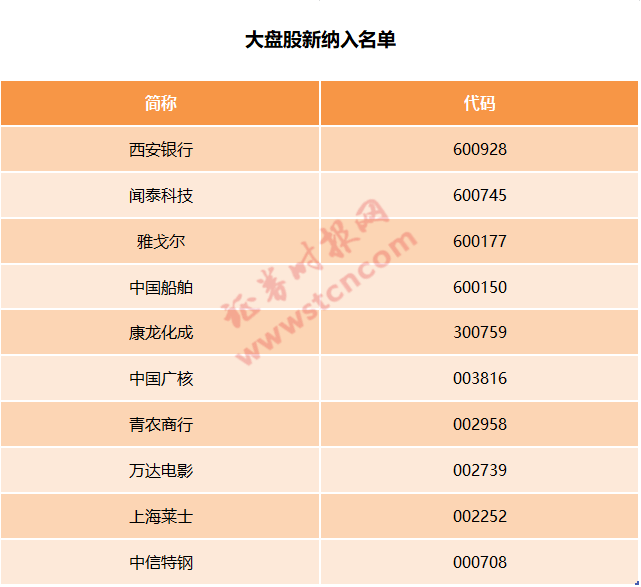让我们来看看新股:大盘股是由中国广和、中信特钢、康龙城等10家公司新合并而成的;中资股新纳入升邦、拉卡拉、资本等7只股票;小盘股新并入艾德生物、凯润和BAIC蓝谷等67只股票;小盘股新增亚翔一体化、苏龙杰、荣盛环保、浙江世保等4只股票;